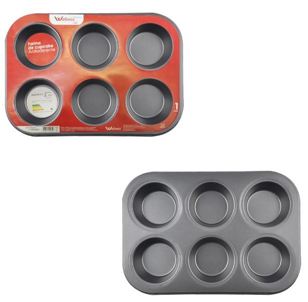 Forma 6 Cupcakes 2,7x17,6x26cm Aço Carbono Revestido Material Antiaderente