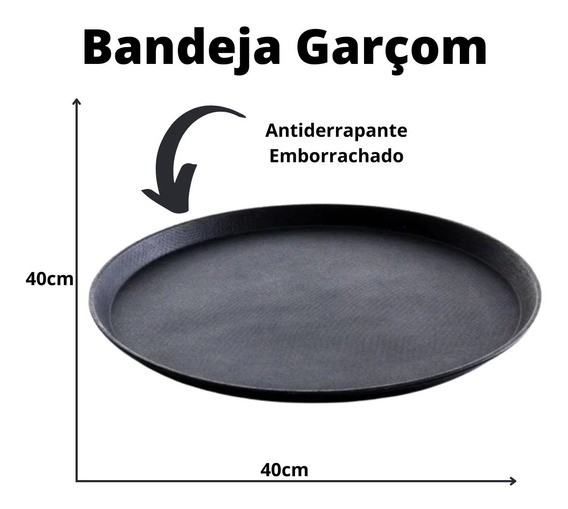 Bandeja Redonda Garçom 40cm Antiderrapante Polipropileno C/borracha Clink