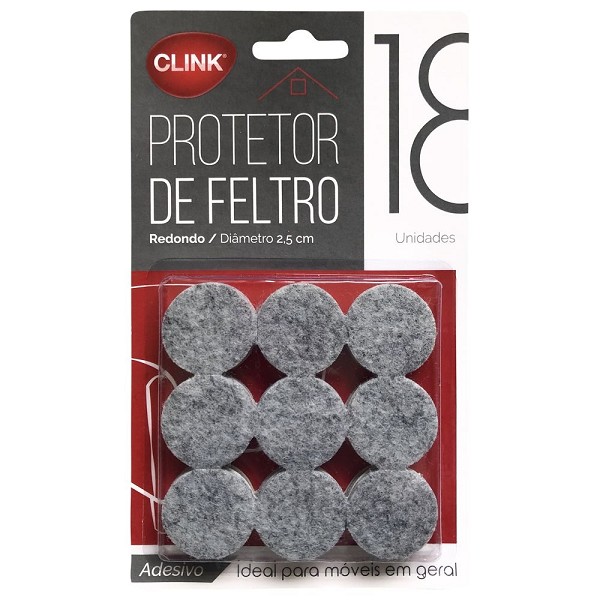 Protetor Móveis C/18und Feltro Redondo Adesivo ø 2,5 Cm Cinza Clink
