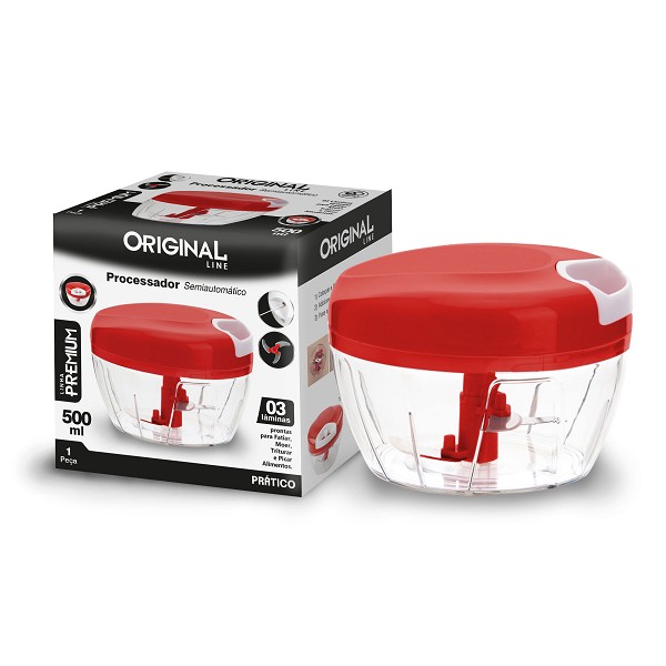 Processador Manual De Alimentos C/3 Laminas 500ml Aço Inox Vermelho Original